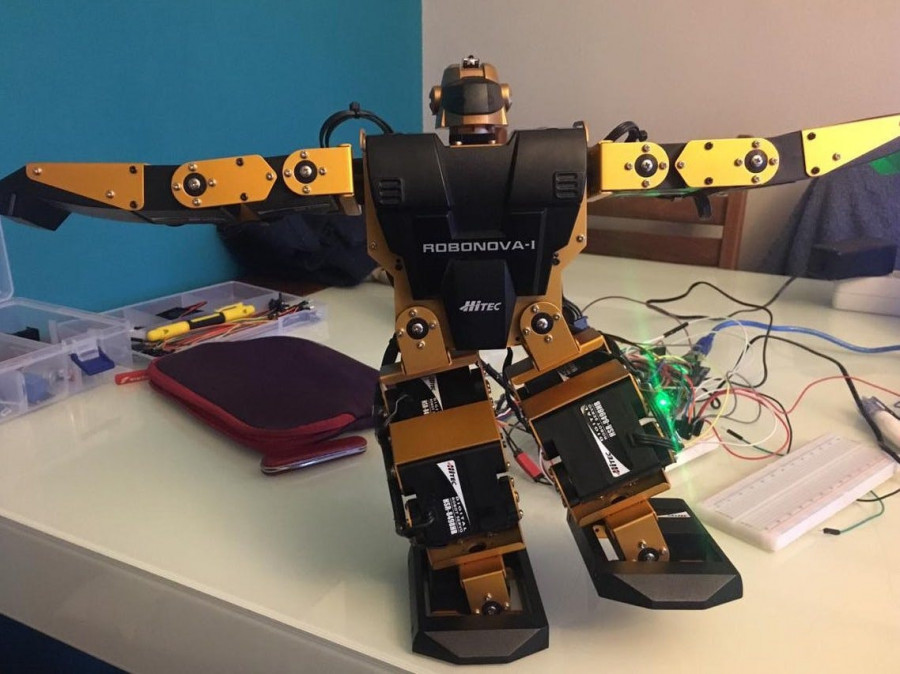 Продам робота Robonova-1, в идеальном состоянии, включали несколько раз, все время лежал в фирменной сумке, в шкафу. Аккумулятор под замену в силу времени, не хватает заряда на выполнение движений.